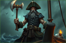 Kapitánovy dvouruční sekery. Když ovšem zavrávoral, pirát toho ihned využil. Sekera